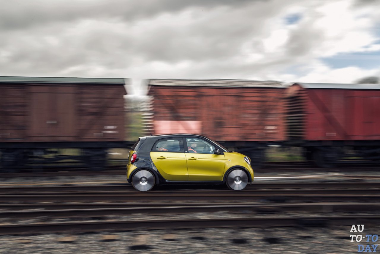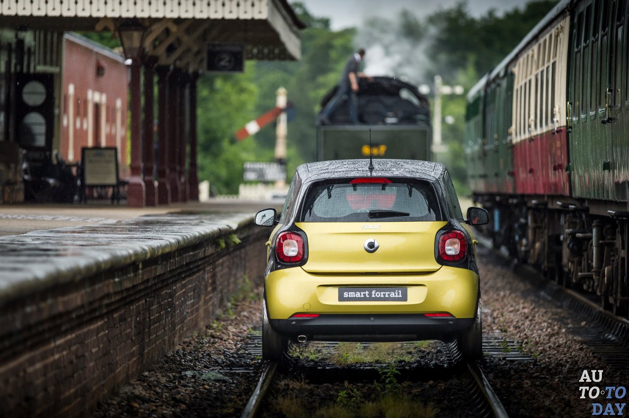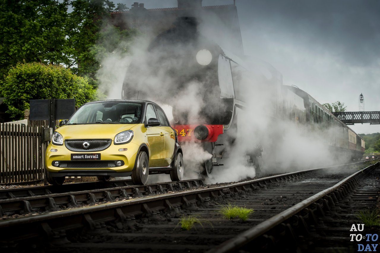 В машине также специалисты деактивировали рулевое управление. Алюминиевые опоры были сварены между осями, чтобы избежать рулевого движения. После преобразования, Smart Forfour проходил испытания в Англии. Локомобиль передвигался по 16,1-километровому участку железной дороги. Хотя маршрут представляет собой серьезную проблему для модифицированного Smart Forfour, ему удалось завершить поездку, заставая пассажиров на станциях врасплох. Компактный автомобиль управлялся лицензированным машинистом поезда. Как вы можете себе представить, это был просто рекламный трюк, призванный увеличить продажи Smart Forfour на европейском рынке.