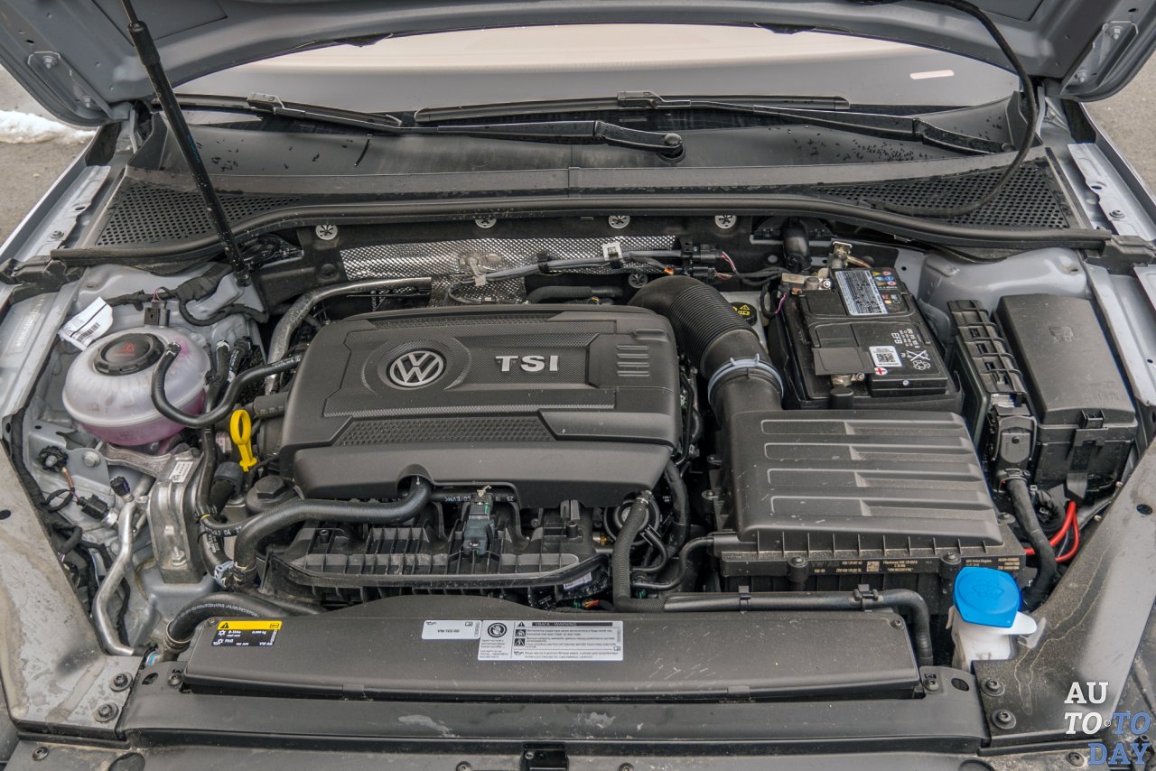 Среди нескольких бензиновых и дизельных моторов, которые предложены для «Пассата», на герое нашего теста установлен середнячек – 180-сильный бензиновый силовой агрегат объемом 1,8 литра. Двигатель семейства EA888 с непосредственным впрыском и фазовращателями максимально облегчили. Он весит 140 кг, что на семь килограммов меньше прежнего. На блоке цилиндров с интегрированным выпускным коллектором и более тонкими стенками сэкономлено 2,4 кг, на облегчённом коленвале — 1,6 кг, и ещё три кг — на поршнях из нового высокопрочного сплава и алюминиевом крепеже.