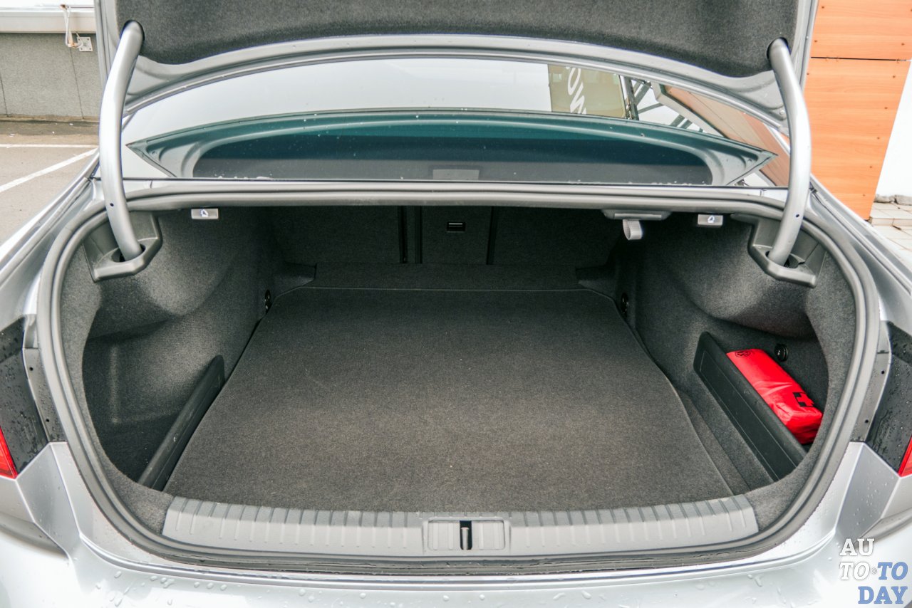 Сам же грузовой отсек – настоящая гордость автомобиля, по объему седан – лидер класса. 586 литров доступны по умолчанию. Спинки откидываются со стороны грузового отсека, и получается уже 1152 свободных литра объема. Под полом разместилось полноразмерное запасное колесо. Пусть это и не модно, но очень практично. Мы – за.
