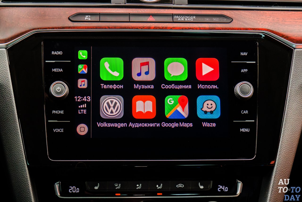 Volkswagen не спешит отказываться от механических кнопок настроек микроклимата, и это правильно. На большом мониторе хорошо считываются карты.