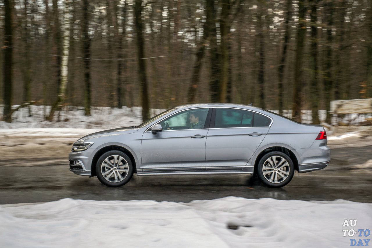 Пропорции – вот настоящая сила «Пассата». Взвешенная длина автомобиля, почти равновесные капот и багажник (с близкого расстояния так точно кажется), ребро по всей боковине кузова и органично вписанные в нее дверные ручки – краткость и грация. Благодаря продуманному профилю седана, автомобиль кажется сильно длиннее предшественника. На самом деле, авто выросло только на несколько миллиметров. В ширину и высоту «немец» разросся на 12 и 144 мм соответственно. Визуально прирост габаритов ощущается из-за прибавки в колесной базе на целых 79 мм. Несмотря на то, что в кузове седана только задняя полка выполнена из алюминия, благодаря увеличению доли высокопрочных сталей, в сравнении с предшественником, кузов похудел на 33 кг.