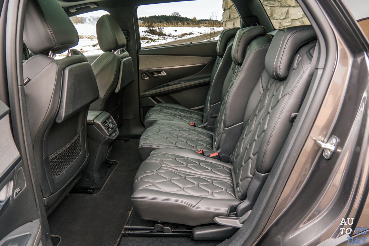 Кресла 5008-го – это отдельная история. В максимальной комплектации передняя пара снабжена электрорегулировками, памятью и массажем с несколькими программами. На втором ряду каждое из трех посадочных мест регулируется отдельно – вперед-назад в диапазоне 180 мм, по углу спинки, или их можно вовсе сложить. Ни ноги, ни плечи каждого из троих пассажиров не будут ущемлены. В плане удобства посадки все сделано «по-минивеновски»: ровный пол без трансмиссионного тоннеля, откидные столики, дефлекторы обдува и порты зарядки. На третьем ряду все не так радужно, но если несколько отодвинуть перед собой кресло вперед, то даже человеку с ростом за 180 см там найдется место. Но на дальние дистанции путешествовать комфортно будет только детям.