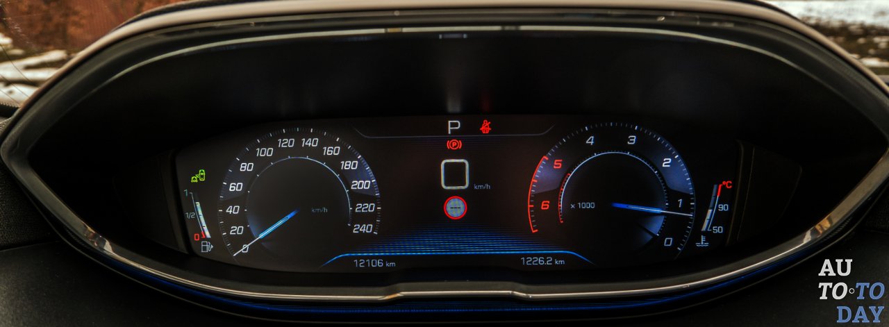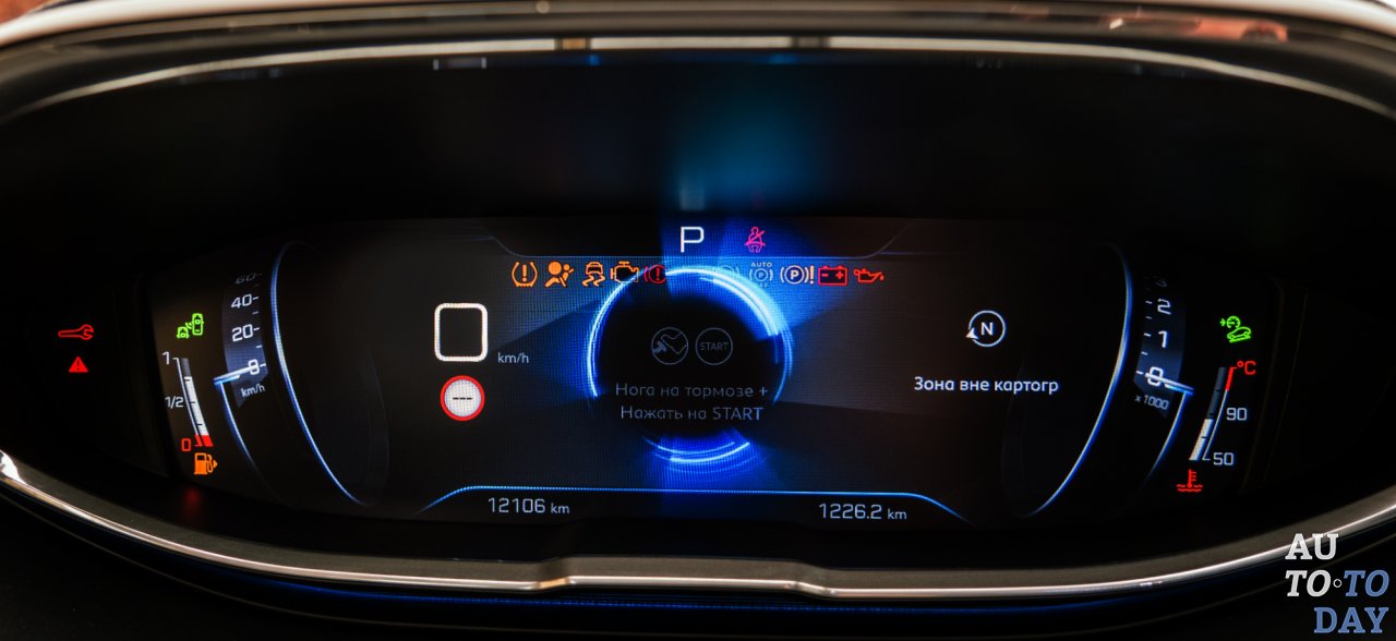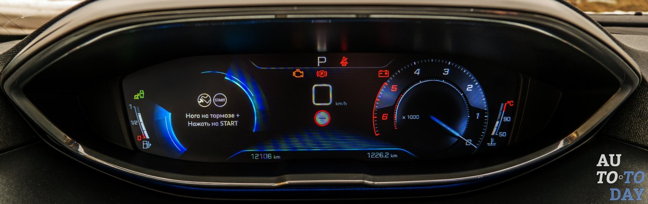 Концепцией построения рабочего места водителя i-Cocpit французские инженеры и дизайнеры, наверное, в новом автомобиле гордятся больше всего. О ее особенностях (руль малого диаметра, электронный щиток приборов и пр.) мне на почту приходил не один пресс-релиз. Каков же она в деле? Рулевое колесо со срезанными верхним и нижним секторами оказался удобным в использовании. Очень прикольно при маневрировании держаться как раз за эти срезанные части. К тому факту, что на щиток приборов нужно смотреть не через руль, а поверх него, нужно привыкнуть. Вашему покорному слуге на это потребовалось не больше часа.