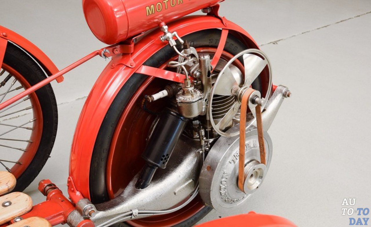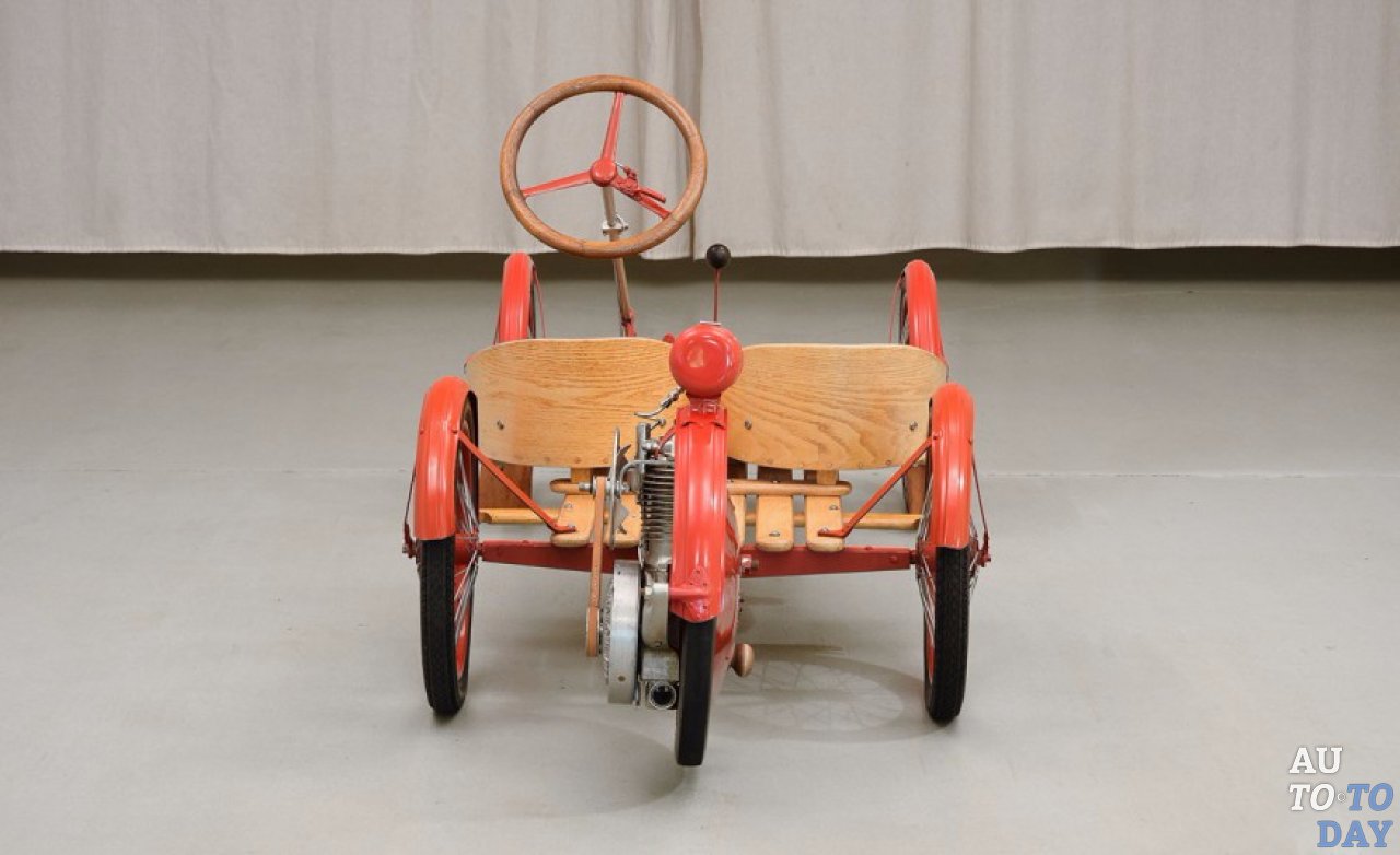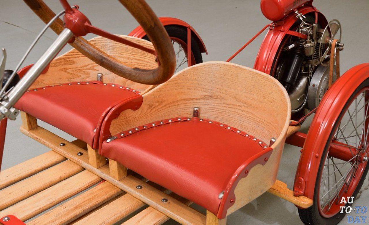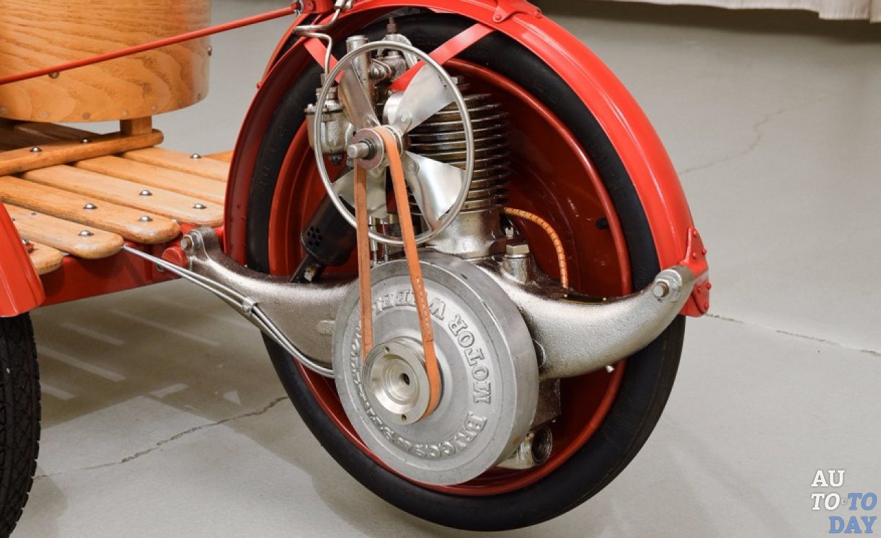 Эта технология довольно нова, ведь чаще всего мы видим встроенные в колеса электрические двигатели. Мощность силового агрегата составляет 2 л. с. Как понятно из объявления о продаже, автомобиль был полностью восстановлен и теперь за него просят около 16 500 долларов. Такой странный транспорт производился серийно с 1915 по 1918 год. Интересно, что на стоянке пятое колесо поднимается в воздух, двигатель запускается на весу и уже вращающимся плавно опускается на дорогу. Практически все машины были окрашены в красный цвет и были широко известны как «Красный жук».