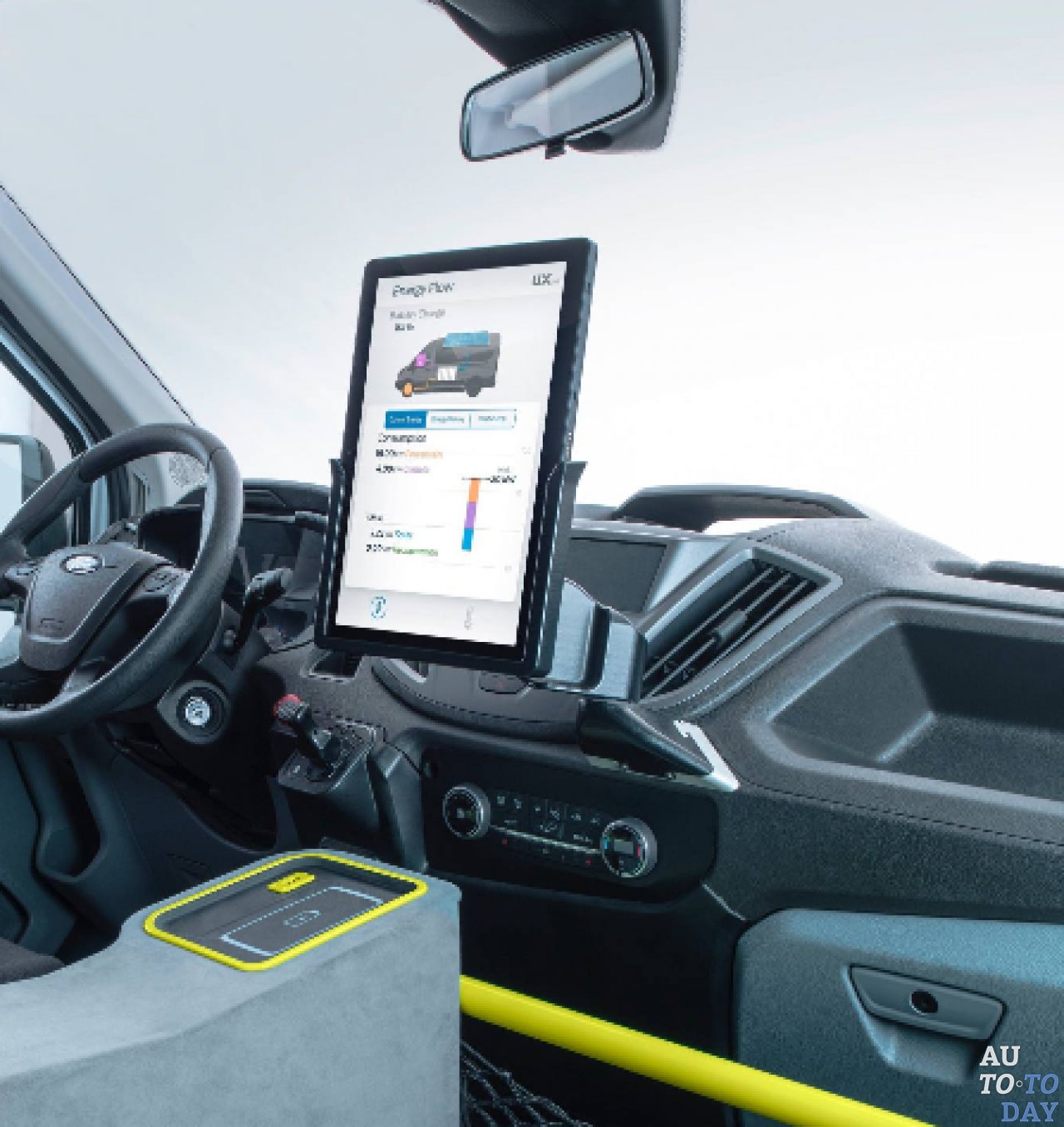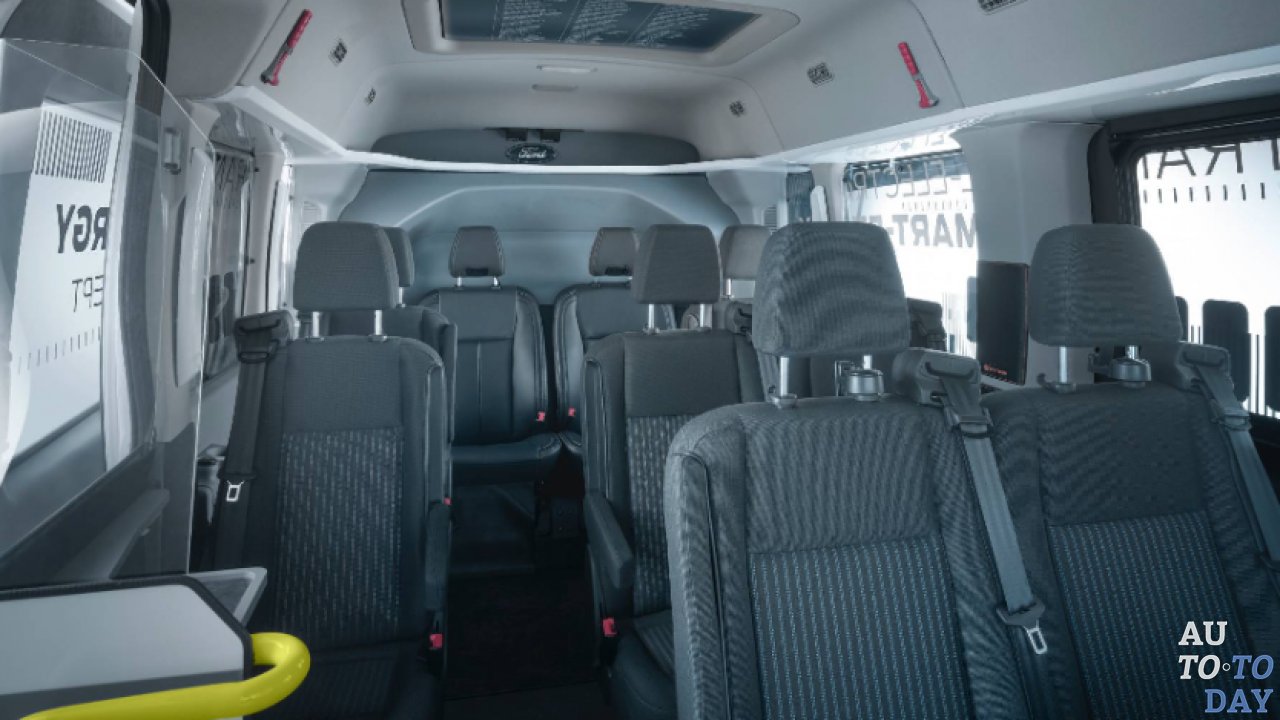 Как указал Ford, Transit Smart Energy Concept – это 10-местный микроавтобус, обеспечивающий запас хода до 150 км (точно так же, как eSprinter Mercedes-Benz, оснащенный аккумулятором мощностью 55 кВтч), и включающий уникальные стилистические элементы, такие как новая решетка радиатора, логотип Ford с подсветкой в синем цвете и надписи «Electric». Внутри располагается массивный дисплей, отображающий всевозможную информацию, и четыре ряда сидений для 9 пассажиров.