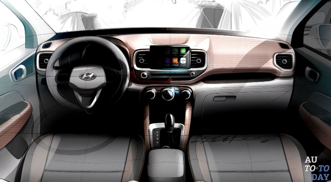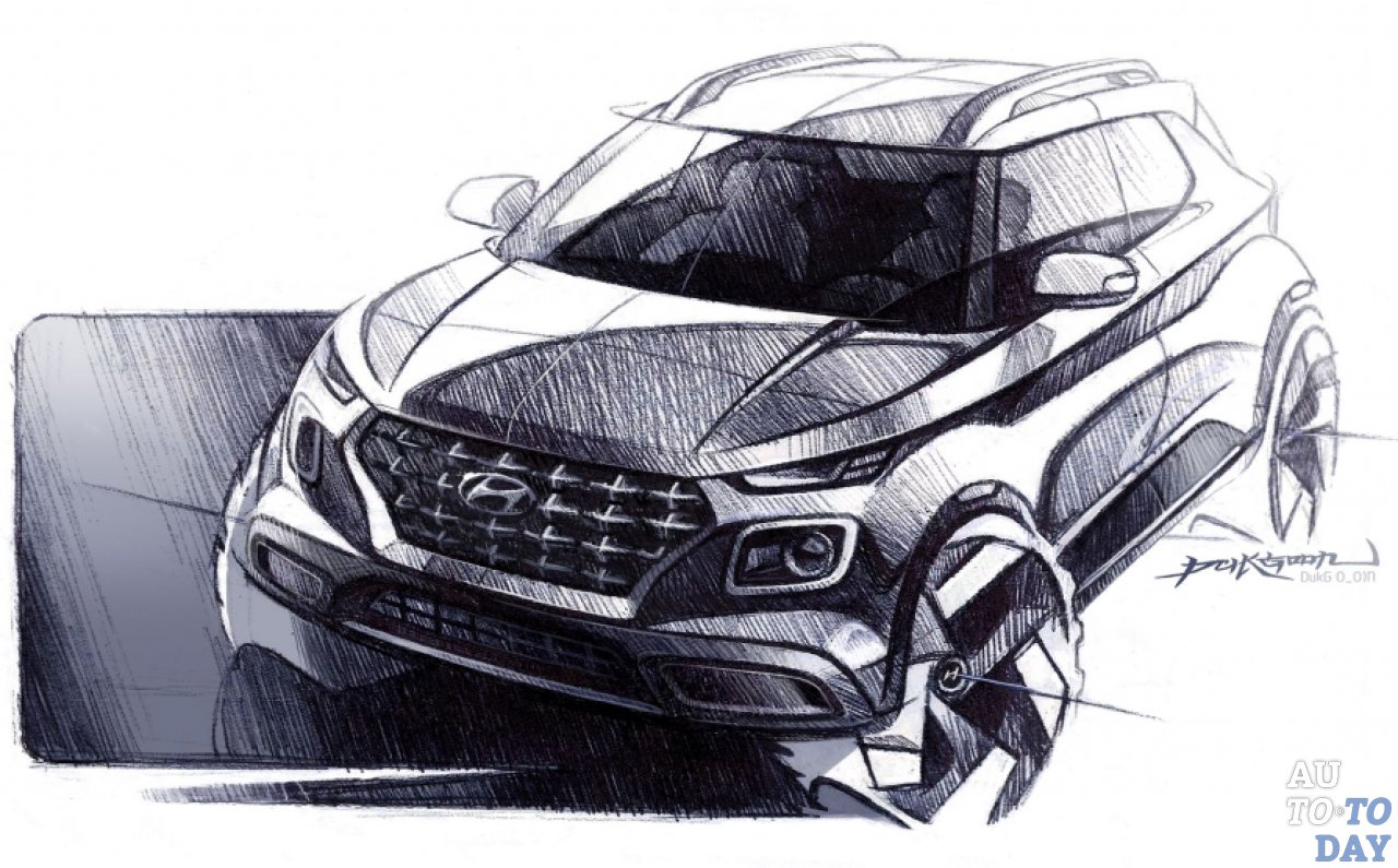 Venue станет самым компактным кроссовером компании со стилем, явно вдохновленным более крупным Kona и Santa Fe. Это будет выражаться в небольших угловатых фарах, агрессивной решетке радиатора и рейлингах на крыше. Дополнительно автомобиль получит диффузор, квадратные задние фонари, тонкий спойлер на крыше, а также рулевое колесо с тремя спицами, информационно-развлекательную систему с сенсорным дисплеем, окруженную вентиляционными отверстиями, несколько физических кнопок и элементы управления для системы климат-контроля.
