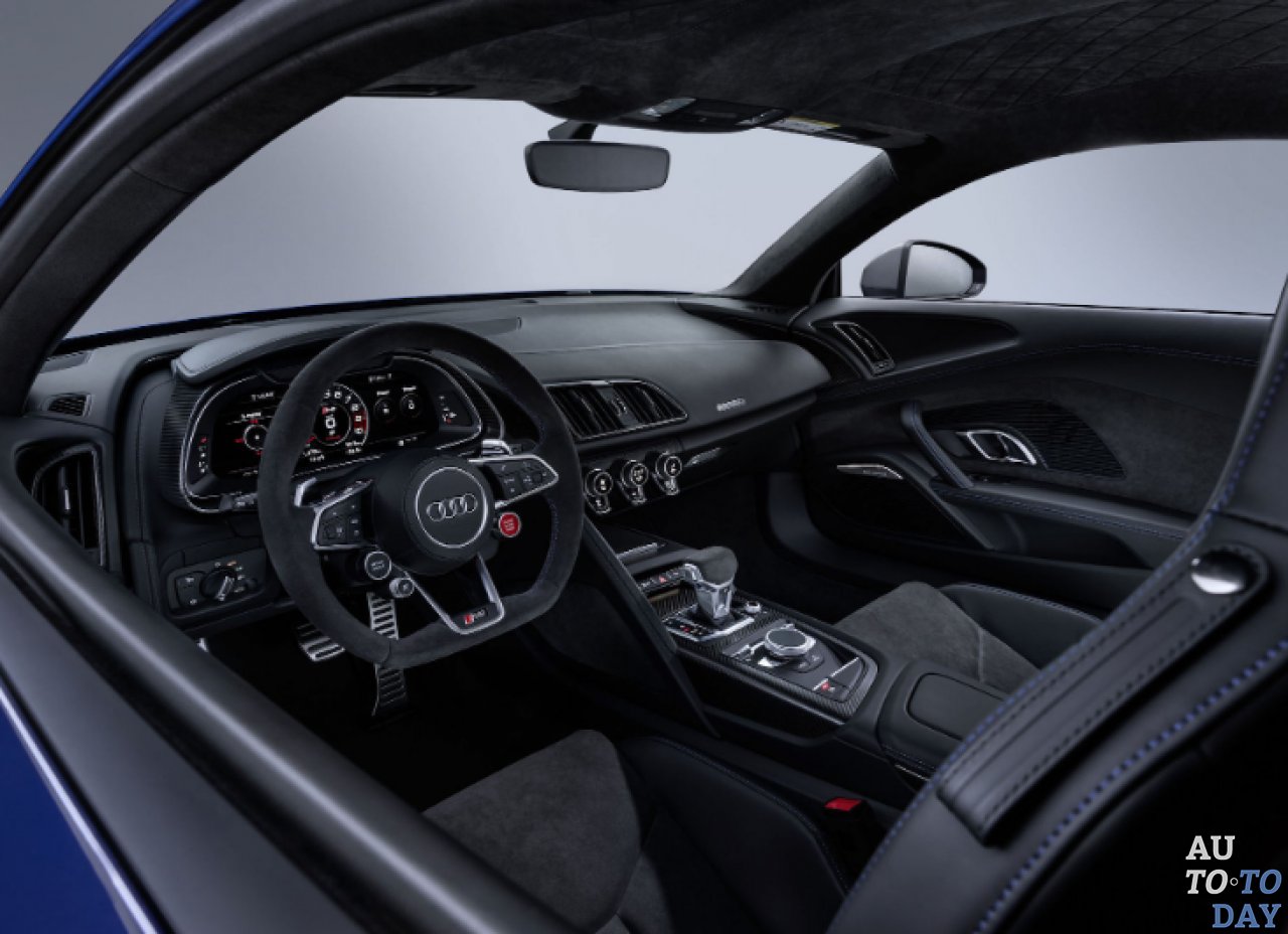Стандартно предлагаются 19- и 20-дюймовые колесные диски (для R8 Performance 20-дюймовые титановые колеса), двухцветная отделка (на выбор клиентов доступны разные оттенки, например, Ascari Blue и Kemora Grey), цифровая приборная панель, беспроводная зарядка для смартфонов и две новых реализации интерьера: Pastel Silver и Palomino Brown.