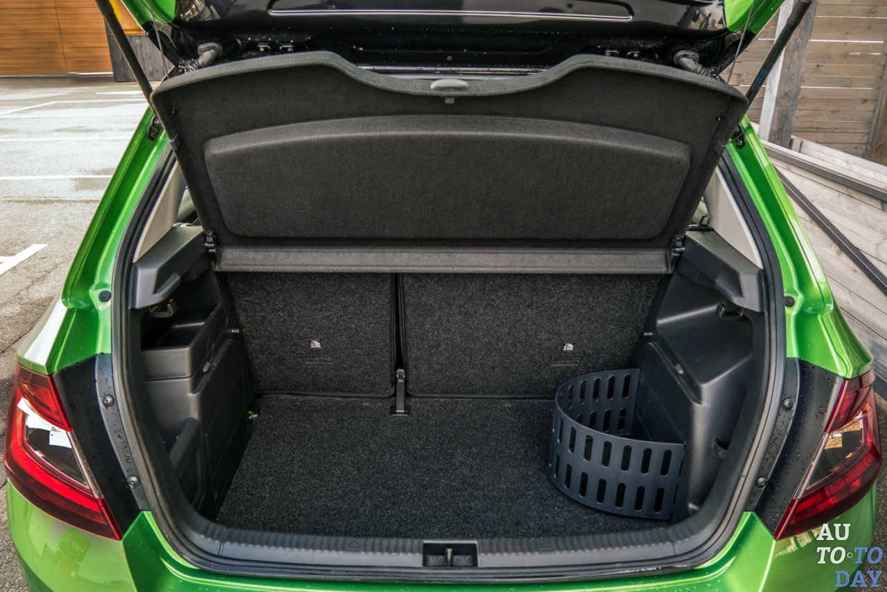 Автомобиль чешского бренда узнается и по множеству практичных мелочей в салоне и багажном отсеке, которые повышают практичность и удобство пользования машиной. Конечно, большинство из них предлагаются в качестве опции. В кармане водительской двери хорошо умещается фирменная урна для сухого мусора, а в подстаканник на центральной консоли вставляется подставка для ключа и смартфона. В багажнике расположились несколько крепких крючков для пакетов, или экосумок из супермаркета, также сетка для фиксации мелких предметов. На лючке бензобака спрятался фирменный скребок для снега и льда.