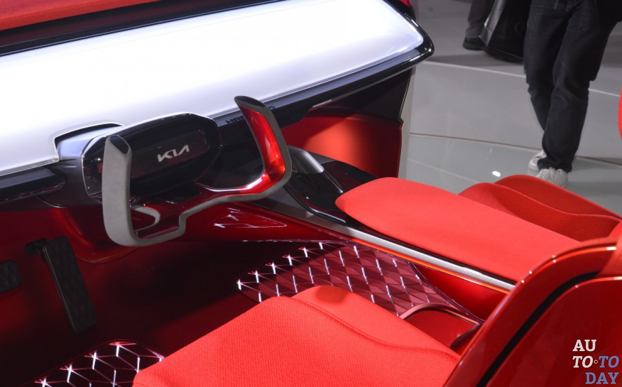 Созданный калифорнийской дизайн-студией Kia, концепт имеет массивную облицовку в металлическом сером оттенке, красные детали, двери с нестандартной конструкцией (двери-бабочки), четырехместный интерьер, 20-дюймовые колесные диски с ярко-красными деталями, идеально сочетающимися с реализацией в задней части. Отличительный красный стиль продолжается и внутри, где оттенок Lava Red преобладает на сидениях, дверных панелях, рулевом колесе, полу и даже ремнях безопасности.