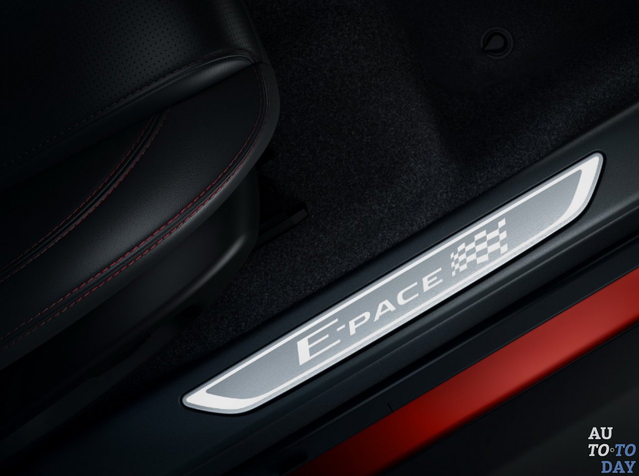 Доступный в трех цветах (Corris Grey, Yulong White и Photon Red), Jaguar E-Pace включает значок Checkered Flag, пересмотренные бамперы, светодиодные фары, 19-дюймовые колеса с интересной отделкой и внешний комплект Black Exterior Pack. При открытии дверей водителя приветствует ‘Chequered Flag’, кожаная обивка с красной строчкой, электрически регулируемые передние сидения с подогревом, рулевое колесо R-Dynamic, 12,3-дюймовый TFT-дисплей и 10-дюймовая информационно-развлекательная система с поддержкой Apple CarPlay и Android Auto. Доступ без ключа также входит в стандартную комплектацию.