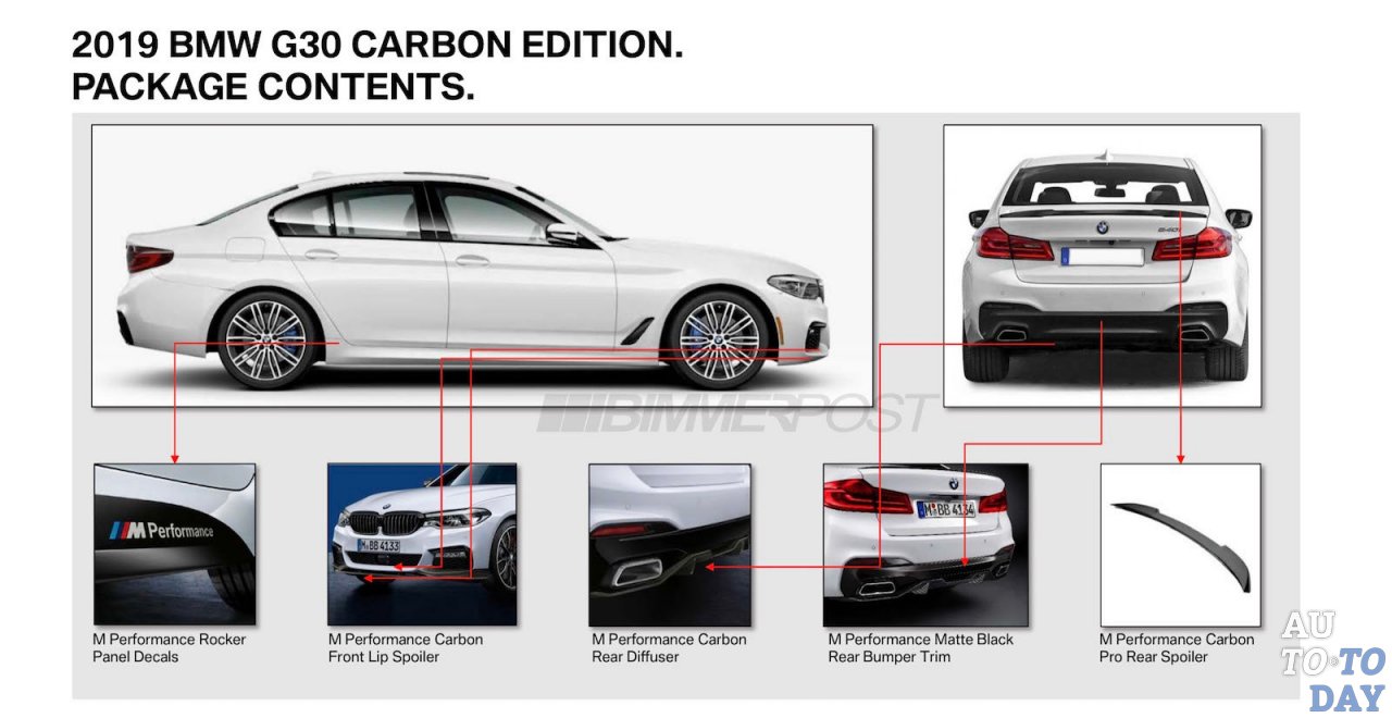 Несмотря на то, что запуск модифицированной 5 Series G30 назначен примерно на 2020 год (возможно, баварская компания продемонстрирует автомобиль на автосалоне во Франкфурте этой осенью), клиенты могут обратить внимание на 5 Series Carbon Edition, которая прибудет в ближайшем будущем.