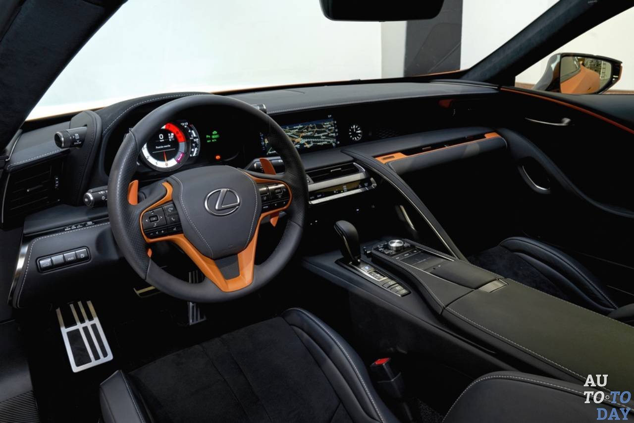 Как указывает компания, отличительный оттенок вдохновляется оранжевыми тонами, которые можно увидеть во время заката. При этом Lexus LC 500h имеет матовую поверхность, подчеркивающую гладкий кузов и контрастирующую с черными 21-дюймовыми сплавами, крышей из углеродного волокна и задним диффузором из аналогичного материала.