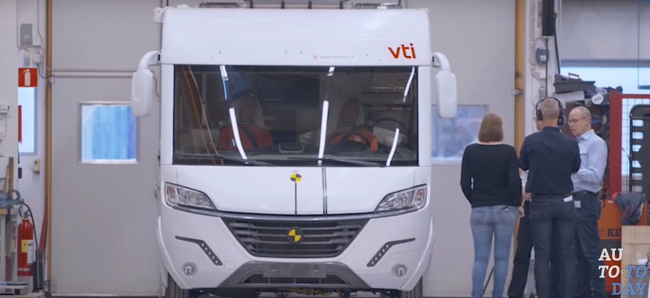 Транспортная администрация Швеции решила провести краш-тест фургонов и автодомов, чтобы ответить на вопросы, касающиеся безопасности. Две разных модели испытывались со скорости 64 км/ч (39 миль в час).
