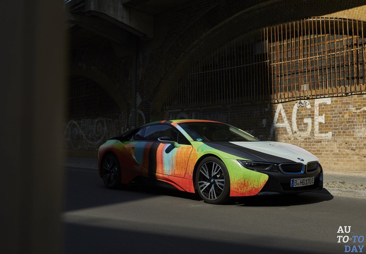 Описанный как «независимый эксперимент по форме и цвету», i8 принадлежит другу Томаса Шейбица. Именно он вдохновил живописца обратиться к своей мелкомасштабной картине, созданной примерно два года назад. В результате, гибридный спортивный автомобиль получил увеличенные фрагменты произведения искусства в разных контекстах.