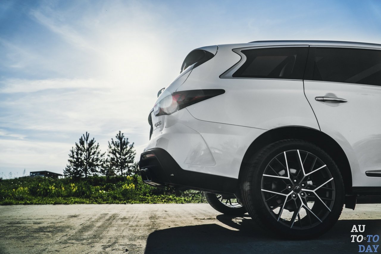 Спереди Infiniti QX60 Missuro получает более агрессивный бампер, дополненный массивными воздуховодами (придают автомобилю более трековый вид), противотуманные фары, встроенные в боковые воздухозаборники, и решетку радиатора со сложным V-образным рисунком и фирменным значком Larte Design.