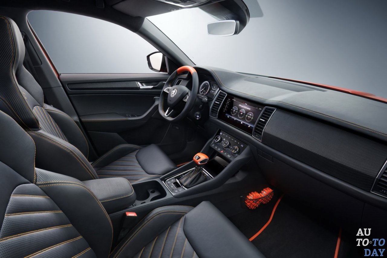 В интерьере также есть несколько улучшений, таких как светящийся логотип Skoda, специальные вставки в спинках передних сидений, встроенный холодильник и информационно-развлекательная система Columbus. В шоу-машине установлены и две рации, позволяющие лучше ориентироваться на сложных участках местности.