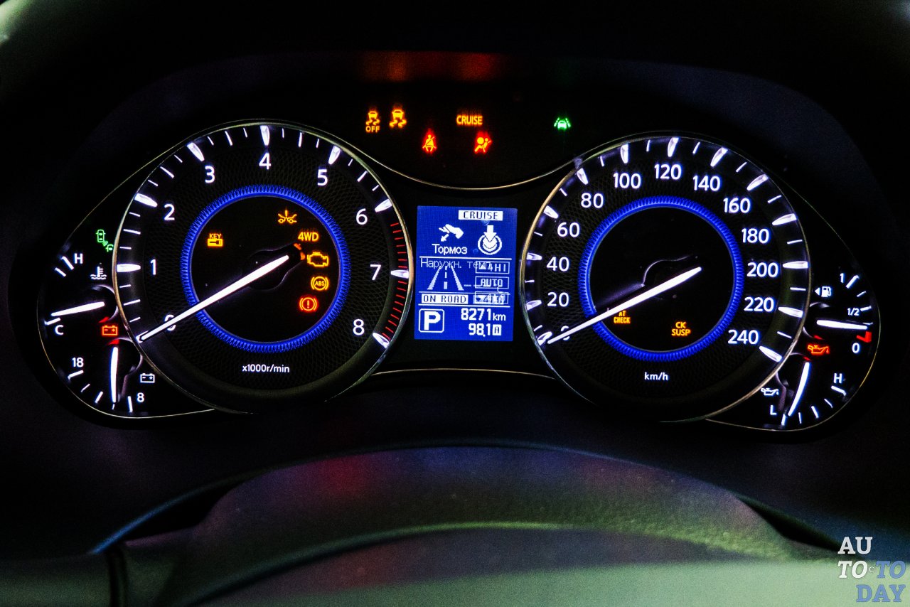 Мотор работает легко и непринужденно благодаря большому запасу крутящего момента. Но за все приходится платить. И чаще всего мы говорим о бензине. 100-литрового бака в городе не хватит даже на 500 км. Официальный расход в мегаполисе – 20 литров. В «пробочных» реалиях он на 1-2 литра выше. Спокойная езда по трассе съедает 13-14 литров на каждую пройденную «сотню». Но все же это один из самых идеальных автомобилей для дальних дорог – двойные стекла, отличная шумоизоляция. На этом «Инфинити» 90 и 130 км/ч – одинаково приятны.