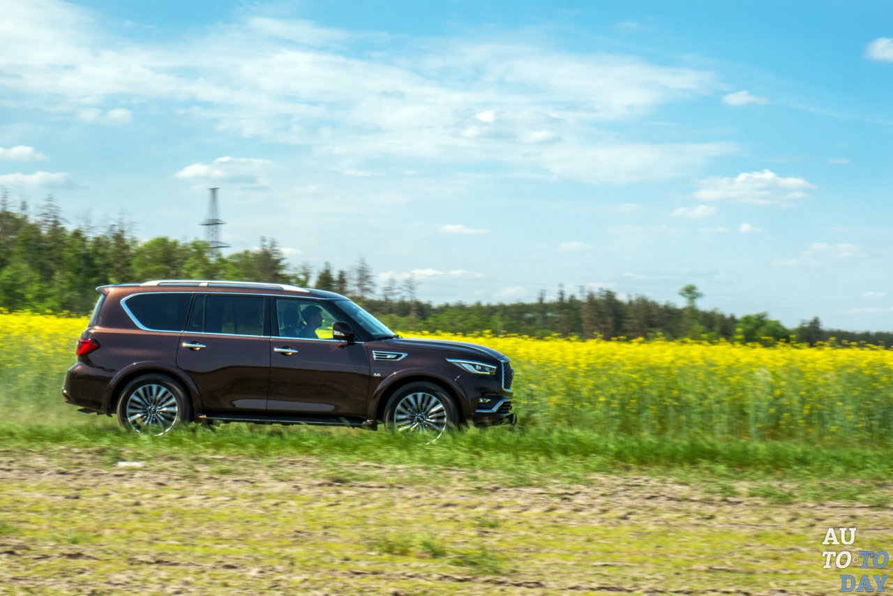 По многим параметрам флагманский внедорожник от Infiniti ближе к кораблю, чем к современному среднестатистическому автомобилю – 5,6-литровый мотор, бак на 100 литров, грузовой отсек почти на 2700 литров. И это лишь некоторые характеристики. Если по водным меркам – небольшая яхта, то по меркам наших дорог – настоящий дредноут. Каков же он в городе и на трассе? И насколько он далек от бездорожья?