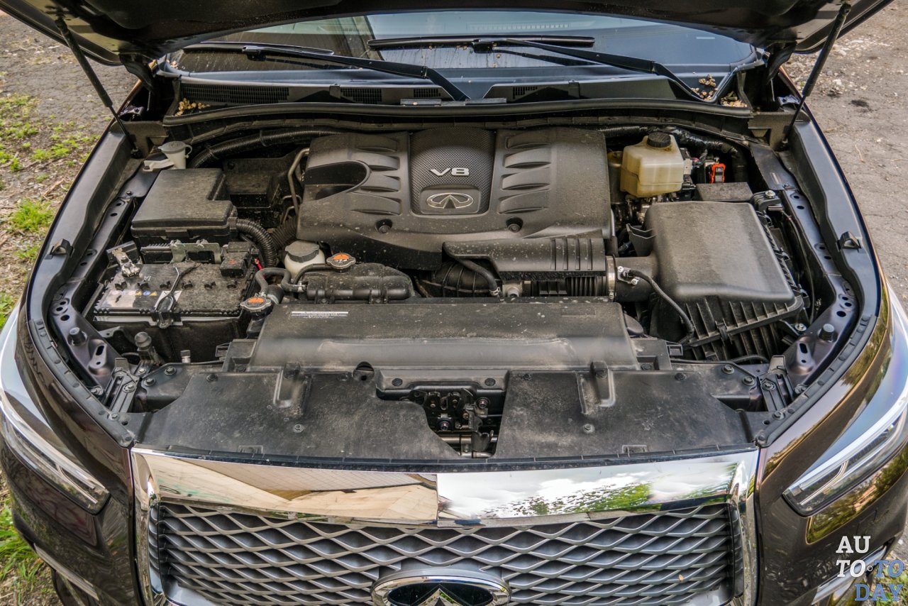 5,6-литровый атмосферный двигатель с индексом VK56VD – единственный и безальтернативный вариант для «Инфинити». Его мощности в 405 л. с. и максимального крутящего момента в 560 Нм достаточно, чтобы разгонять тяжелый внедорожник до 100 км/ч за 7,5 секунды. В паре с «восьмеркой» работает семиступенчатый «автомат».