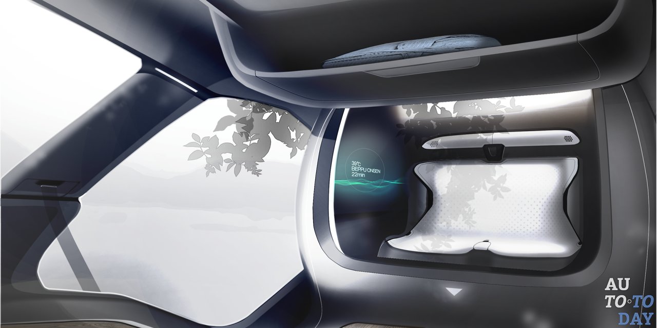 Концепция, получившая название Onsen, довольно мала благодаря использованию полностью электрической трансмиссии. Это позволяет создать довольно просторную кабину с вполне традиционным интерьером, который включает цилиндрическую ячейку. Последняя является водонепроницаемой, и при нажатии кнопки пользователи могут заполнить ее водой. Также доступные сидения используют функции массажа и для отвода пара из кабины есть специальный выход.