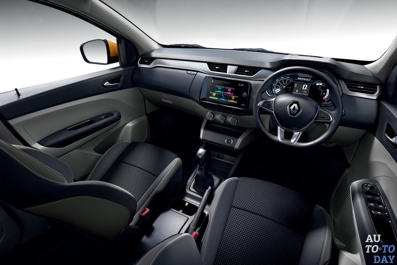 Интерьер Triber минималистичен. Внутри располагается типичное рулевое колесо Renault, информационно-развлекательная система среднего размера, кондиционер, электрические стеклоподъемники, вентиляционные отверстия для всех рядов сидений, специальные отсеки для хранения личных вещей и дополнительные разъемы USB.