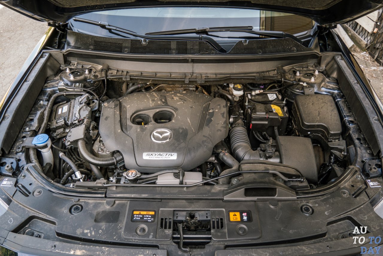 Mazda CX-9 оснащается алюминиевым турбомотором Skyactiv-G 2.5T, который создан на основе атмосферного бензинового агрегата с непосредственным впрыском. Степень сжатия снижена с 13,0:1 до 10,5:1. Система Dynamic Pressure Turbo — это двухканальный выпускной тракт на входе в турбину (не путать с компрессором Twin Scroll). На больших оборотах газы поступают на крыльчатку через оба канала, а до 1600 об/мин один из них закрыт управляемой заслонкой. Поток, двигаясь по более узкой части тракта, ускоряется, обеспечивая необходимое давление наддува (до 1,2 бара) и высокий крутящий момент (420 Нм уже при 2000 об/мин).