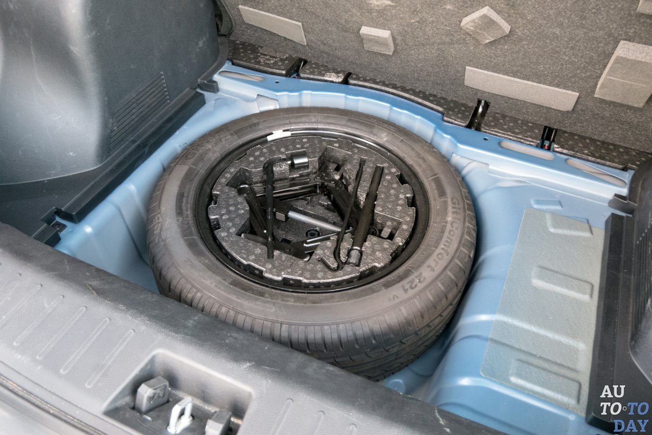Вот что удивило, так это большой объем багажника. По умолчанию в него уместится 600 литров поклажи. Задние кресла складываются в пропорции 40/60, максимальное значение багажного отсека равно 1100 л. Под полом разместилось временное запасное колесо.