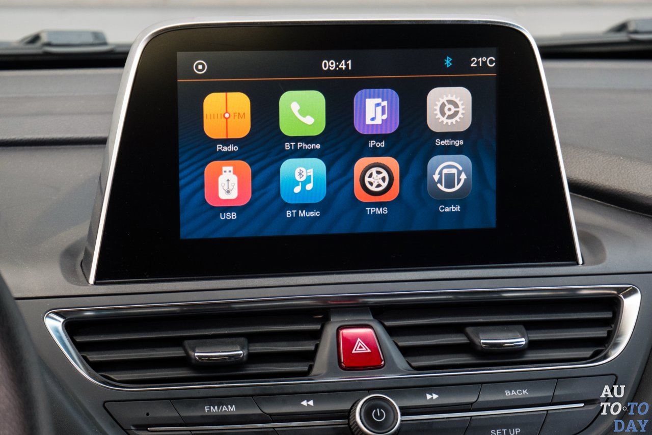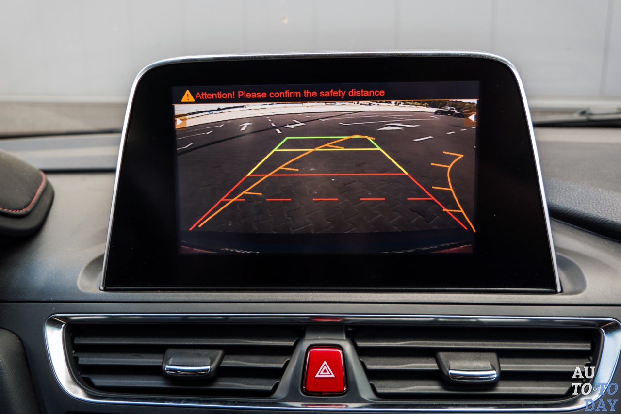 Мультимедийная система опирается на 8-дюймовый сенсорный дисплей с графикой, которая очень напоминает иконки Apple CarPlay. Сам протокол система не воспринимает, но неплохо считывает аудиофайлы с мобильных устройств, и даже ретранслирует контент, воспроизводимый из Сети онлайн. Камера заднего вида имеет среднее качество картинки, и при этом отлично отрисовывает траекторию движения. Еще не все конкуренты научились такому моменту.