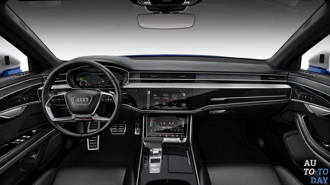 Экстерьер Audi S8 2020 модельного года приносит спортивный обвес, различные варианты колесных дисков, уникальные значки и четыре выхлопных трубы. Внутри доминирует алюминиевая отделка, ромбовидная вышивка на сидениях и нашитые значки, информационно-развлекательная система, сенсорный дисплей для климат-контроля и виртуальная приборная панель Audi Virtual Cockpit.