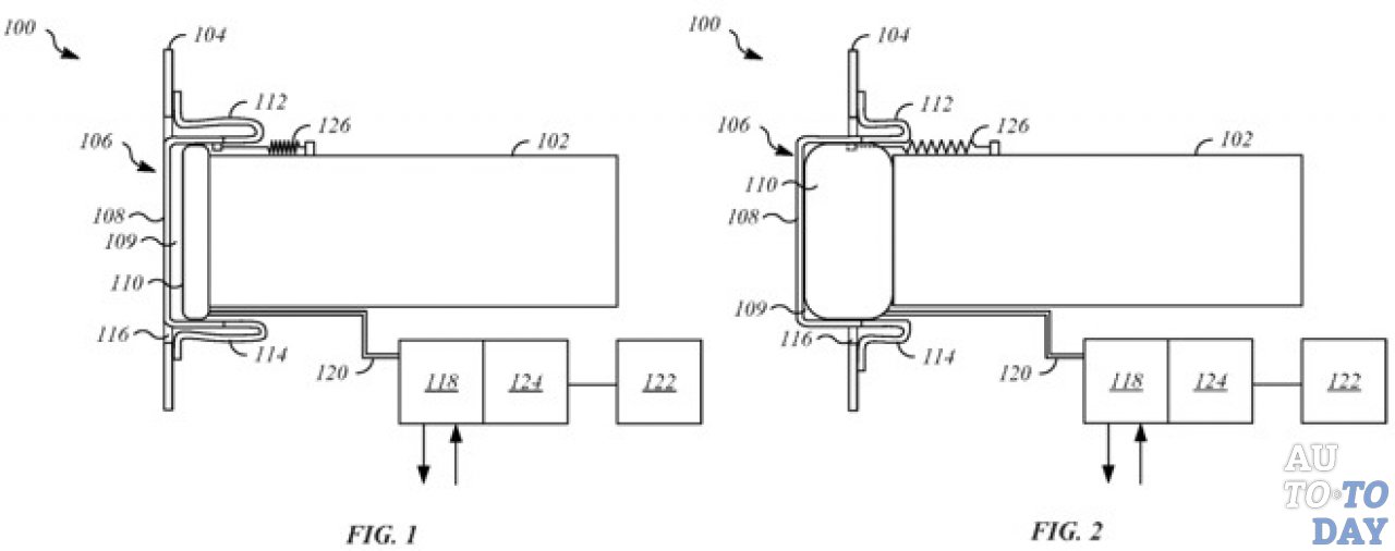 Документ описывает выдвижной бампер с надувной конструкцией, которая позволяет изменять положения. Сам бампер может быть жёстким, иметь U-образное поперечное сечение и даже поддерживать линейное скольжение при перемещении между двумя положениями. Для втягивания он опирается на пружинный механизм, тогда как надувная конструкция хранится в пустом пространстве внутри транспортного средства. Как указывает AppleInsider, подобная компоновка предлагает уникальную эстетику, а также такие преимущества, как возможность убирать бампер, чтобы автомобиль мог поместиться в ограниченных пространствах в парковочных местах. Кроме того, бампер, поддерживаемый воздушной подушкой, может обеспечить дополнительную защиту при столкновении.