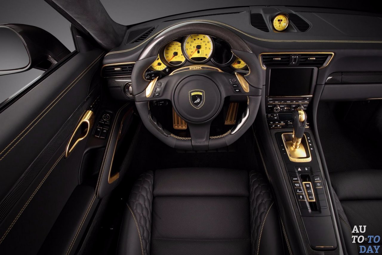 Тюнеры также пошли на радикальный шаг – заменили значок Porsche на руле на свой фирменный логотип TopCar. Комплект доработок силового агрегата и трансмиссии для купе Stinger GTR будет стоить вам €34 800, но, эта сумма не включает в себя дополнительные услуги, такие как установка, настройка и пр. С точки зрения производительности, вы получите дополнительные 60 л. с. мощности и 130 Нм максимального крутящего момента, что несомненно должно помочь автомобилю устремляться с места до первой «сотни» за 3 секунды.