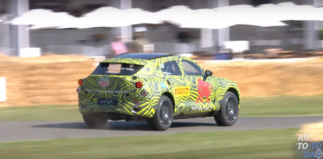 Британский производитель Aston Martin привез прототип DBX на Фестиваль скорости в Гудвуде. Именно там автомобиль публично проехался и очаровал посетителей впечатляющим звучанием двигателя V8.