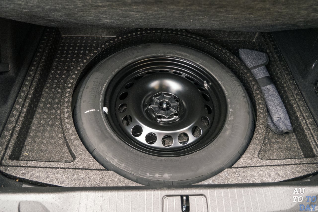 Объем багажного отсека по умолчанию составляет 460 литров. Это значение не рекордное в классе, но одно из наибольших. По форме он – прямоугольный и глубокий, с погрузочной высотой чуть более 70 см. Если сложить спинки второго ряда, то получим 1010 свободных литров. Под полом разместилось временное запасное колесо.