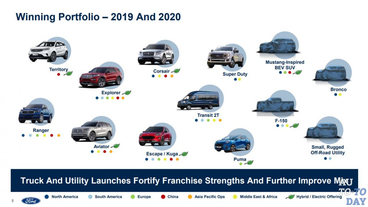 Интересно, что на мероприятии не упоминались гибридный силовые установки Bronco, о которых сообщалось в прошлом году. Вместо этого представители заявили, что предпринимают «универсальный толчок к гибридным системам, чтобы предоставить потенциальным клиентам новые возможности и функции в больших объёмах на прибыльных автомобилях, таких как F-150, Mustang, Explorer, Escape и Bronco».