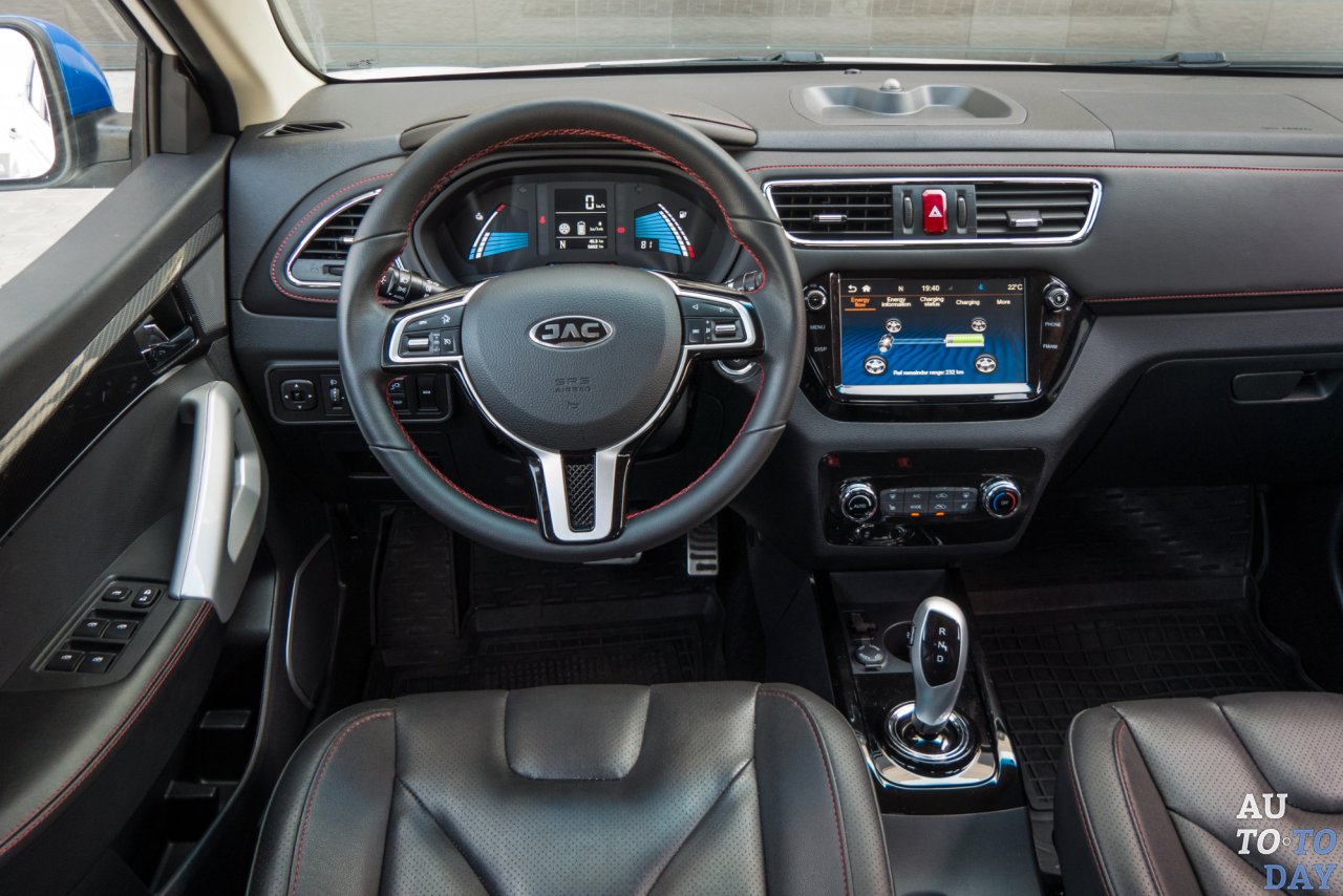Материалы отделки в салоне преимущественно твердых сортов, за исключением отдельных элементов торпедо. Правда, неприятная особенность китайских машин в виде специфического «пластмассового» запаха «Джак» обошла стороной. Если говорить о посадке водителя, то ее идеальной не назовешь. Человеку с ростом выше 180 см будет критически не хватать регулировки лифта вниз. Потому что водитель сидит уж слишком высоко и даже смотрит через лобовое стекло не прямо, а сверху вниз. Также отсутствует регулировка руля по вылету. Хотя само кресло по форме и жесткости неплохо: оно держит спину, с ним и не затекает поясница. А вот на втором ряду сидеть очень даже комфортно. Места для ног – с запасом. Ровный пол позволяет комфортно разместиться троим взрослым.