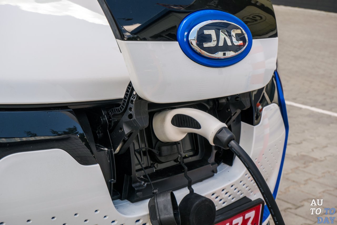С полной нагрузкой клиренс «Джака» равен 150 мм, с одним водителем в салоне кузов машины находится на пару сантиметров выше над землей. Для городского автомобиля – вполне достойный показатель. О том, что вы управляете именно электромобилем, не дадут забыть шильдики на крышке багажника и задних стойках. Порт зарядки расположен спереди, под фирменным логотипом. Лючок открывается исключительно из салона.