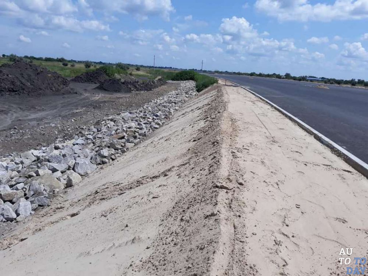 Сейчас дорожники занимаются установкой барьерного ограждения, обустраивают основание дорожной одежды из доменного шлака, а также укрепляют откосы насыпи бутовым камнем.