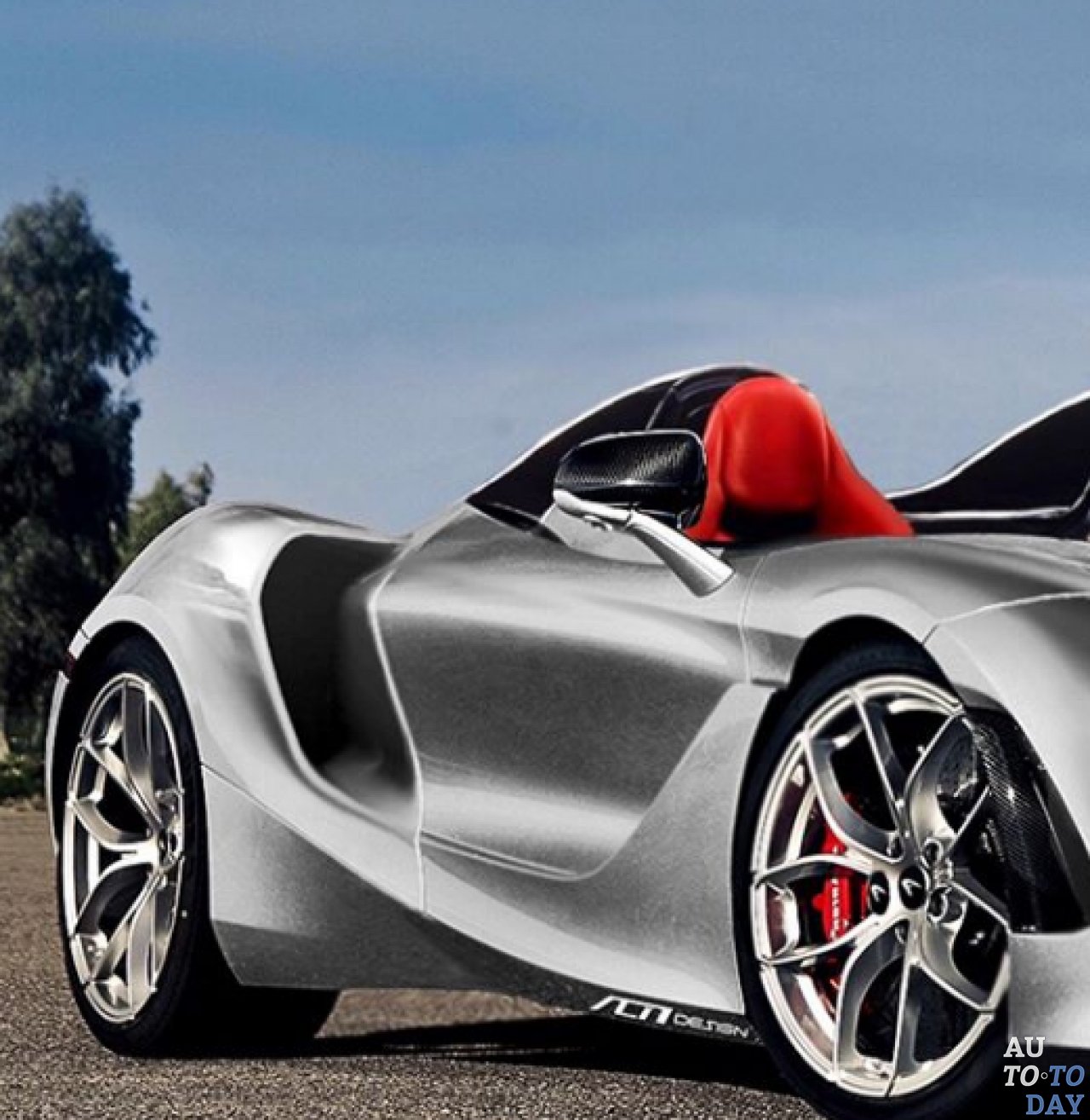 Дизайн явно вдохновлён Speedtail и включает тонкие диагональные фары. Далее просматривается открытая кабина, напоминающая Ferrari SP2 Monza, пара больших воздухозаборников с обеих сторон и привлекательные колёса.
