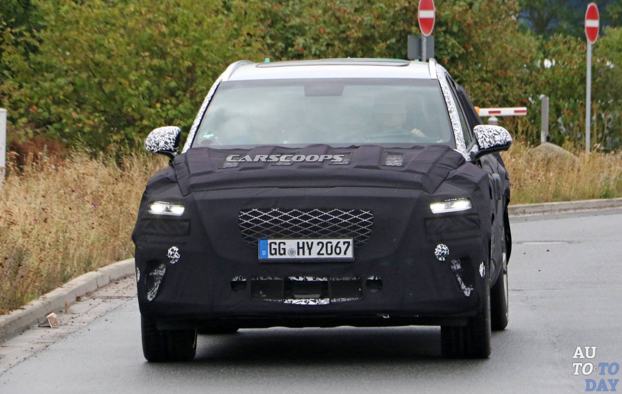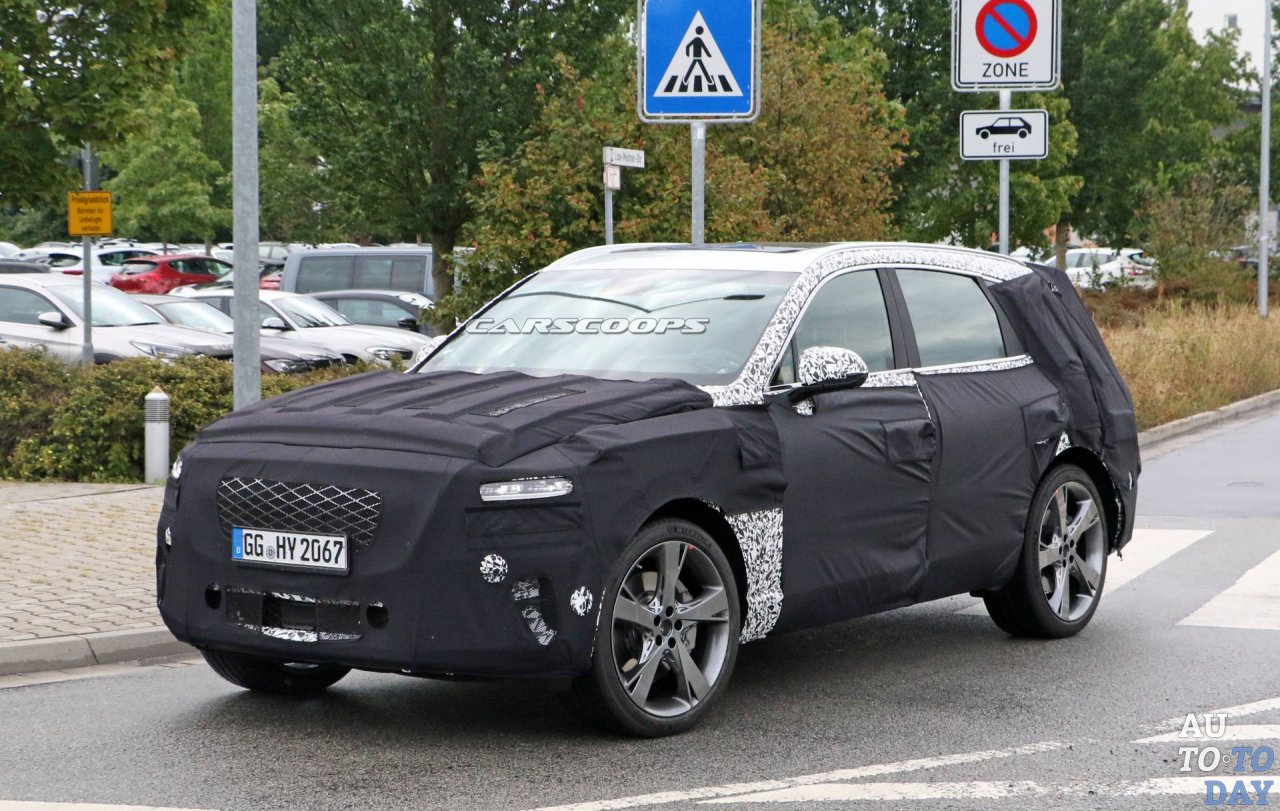 Предстоящий конкурент BMW X5 по-прежнему полностью покрыт камуфляжем и тканью, скрывающей серийные фары и задние фонари. Как можно заметить, горизонтальные задние фонари состоят из двух параллельных элементов и соответствуют приборам, установленным в концепции GV80. Пропорции также кажутся вдохновленными концептом, тогда как интерьер в значительной степени соответствует предварительной модели и воплощает философию Genesis: «роскошь, ориентированная на человека».