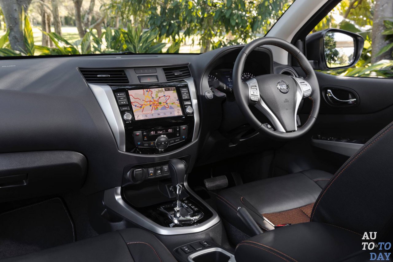 Другими отличительными элементами считаются чёрные ободки фар, чёрные боковые наклейки на нижней части кузова и значок на задней двери N-Trek. Интерьер Nissan Navara N-Trek получает специальные кожаные сидения с вставками с оранжевой ткани, яркую прострочку на сидениях, центральной консоли, подлокотниках и рулевом колесе, регулируемое сидение водителя и подогрев передних сидений.