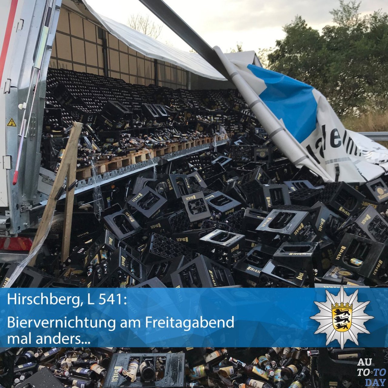 Во время дорожно-транспортного происшествия на юго-западе Германии повредилось примерно 10 000 стеклянных бутылок продукции, что принесло впечатляющие убытки.