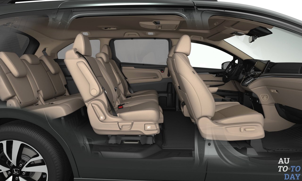В зависимости от версии (LX, EX, EX-L, Touring или Elite) предоставляются порты USB, многоугольная камера заднего вида и автоматический климат-контроль. Например, модели Odyssey EX поставляются с набором Honda Sensing, включающим ассортимент функций безопасности и помощи водителю, трехзонный климат-контроль и раздвижные двери с электроприводом. Отделка EX-L добавляет кожаную отделку, спутниковую навигацию и заднюю мультимедийную систему.