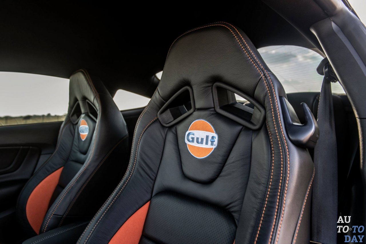 Дилерский центр также получил лицензию на использование знаменитых цветов Gulf Oil и раскрасил 808-сильный Mustang GT в потрясающую комбинацию голубого и оранжевого оттенков.