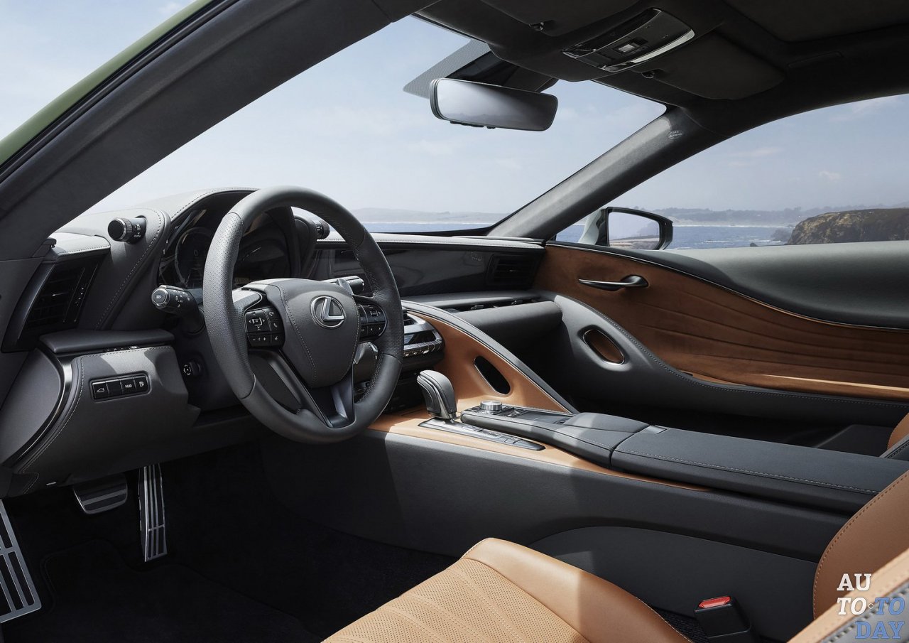 Узнаваемый по внешнему оттенку Nori Green Pearl, LC 500 Inspiration Series комплектуется двухцветными 21-дюймовыми колесными дисками, интересной реализацией салона, отделкой из алькантары, кожаной отделкой, нанесённой на приборную панель, центральную консоль, двери и рулевое колесо с коричневой строчкой.