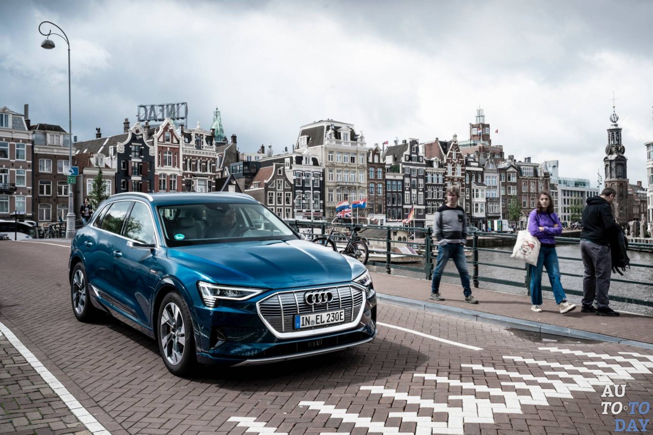 Девять представителей СМИ оказались внутри трёх электрических E-tron 55 и отправились в масштабное путешествие из озера Блед в Словении в Амстердам в Нидерландах.