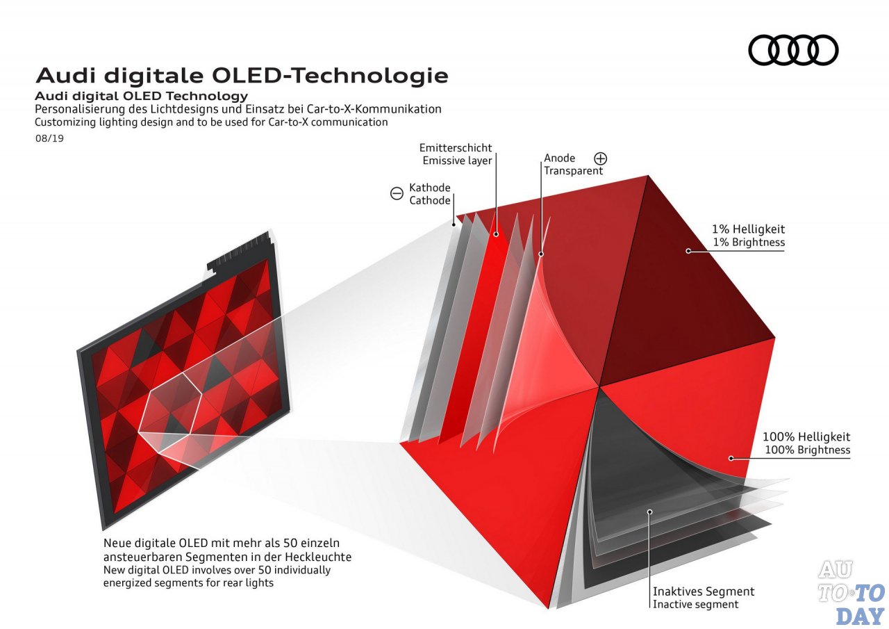 Технология Digital OLED, впервые продемонстрированная на TT RS в 2016 году, предлагает настраиваемые световые решения, которые становятся реальностью в силу «разложения источников света OLED на внушительное количество сегментов, находящихся под различным напряжением».