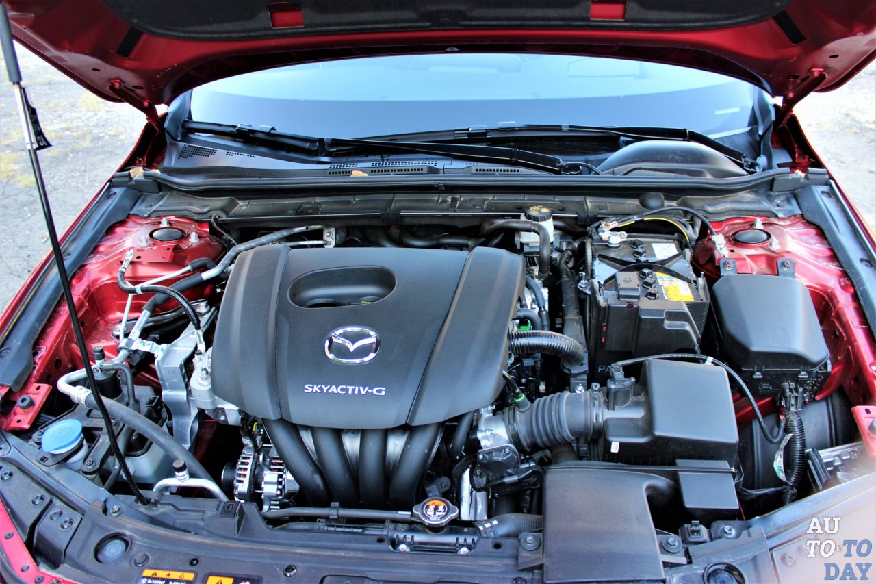 На сегодня украинским покупателям доступно два варианта двигателей: бензиновый атмосферный мотор объемом 1,5 литра мощностью 120 л. с., а также 1,8-литровый турбодизель на 116 сил. На других рынках присутствует и 2,0-литровая «бензинка». Также украинские дилеры бренда ждут-не дождутся мотор нового поколения SKYACTIV-X с высокой рекордной степенью сжатия. Тестовый автомобиль оснащен бензиновым силовым агрегатом. Он относится к семейству Skyactiv-G, имеет непосредственный впрыск топлива и отличается высокой степенью сжатия в 13:1.