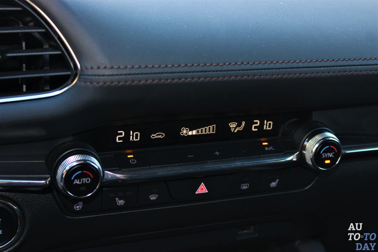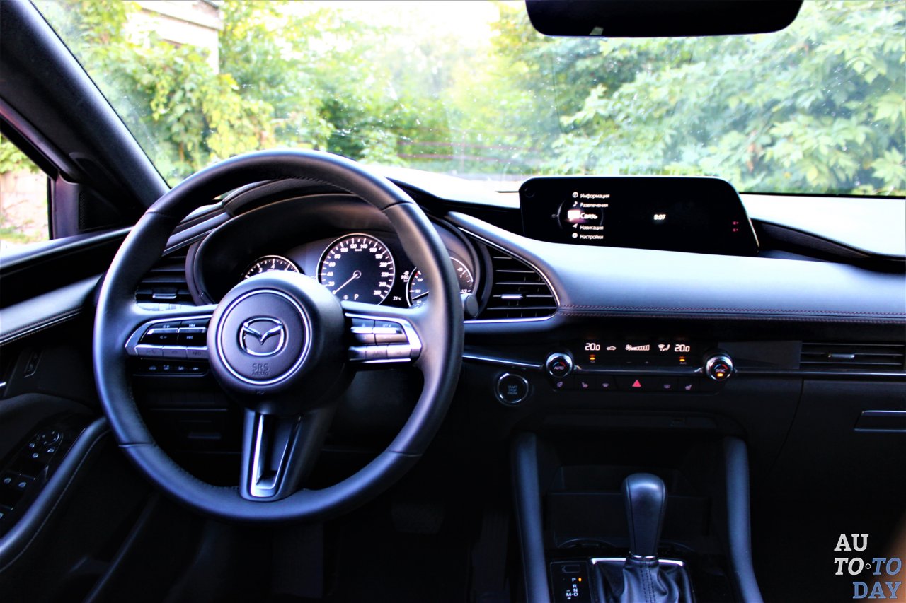 «Мазда» при оформлении интерьера сделала ставку на лаконичный, и одновременно с этим высокофункциональный и безупречный по качеству салон. Торпедо лишено каких-то ярких точек притяжения, но оно полностью выполнено из мягких добротных материалов (за исключением вставок из алюминия). Дефлекторы обдува замаскированы, выделяются только несколько кнопок и два регулятора, отвечающих за микроклимат. Общая архитектура напоминает обновленную Mazda 6.