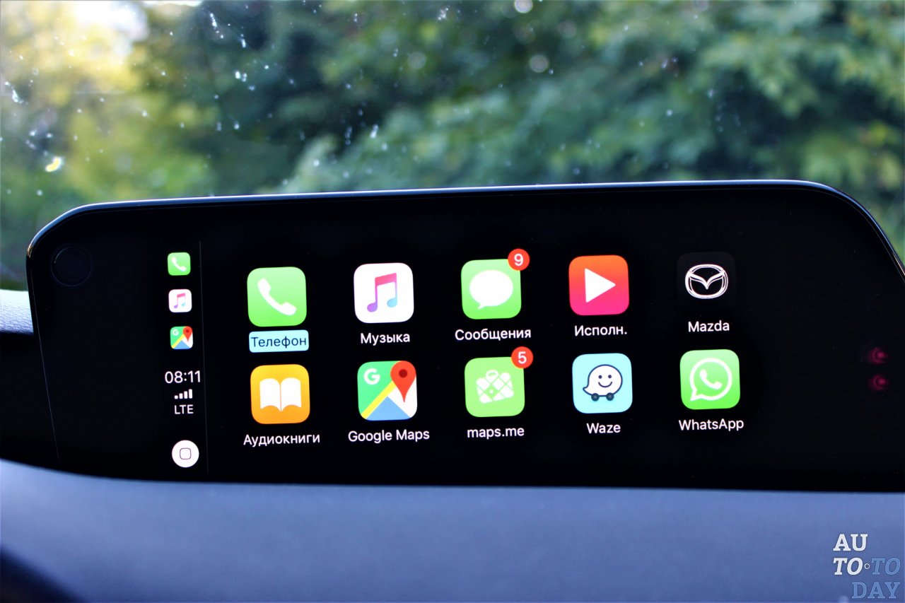 А как же обстоят дела с мультимедиа? По центру торпедо теперь установлен широкоформатный 8,8-дюймовый дисплей. Интересно, что он теперь не сенсорный. По словам представителей компании, все в целях безопасности. С этой же мыслью его отнесли подальше от водителя, чтобы не было соблазна и пытаться нажимать. Контроллер инфотеймента поменял свой дизайн, но общая логика и расположение клавиш осталось прежними. Иконки со смартфонов, полученные через протоколы Apple CarPlay и Android Auto, читаются отлично, да и работает все расторопно. Качество картинки с видеокамер на две головы выше, чем у предшественника.