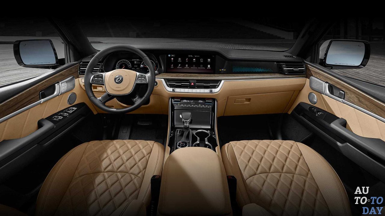 К раннему рендеру интерьера Mohave присоединились снимки, демонстрирующие массивный сенсорный дисплей, относящийся к приборной панели, дополнительный экран для переднего пассажира с возможностью персонализации, 12,3-дюймовый кластер цифровых датчиков, установленный за многофункциональным рулём с четырьмя спицами, беспроводную зарядку, а также отделку из дерева, алюминия и кожаную обивку в чёрных и бежевых тонах.